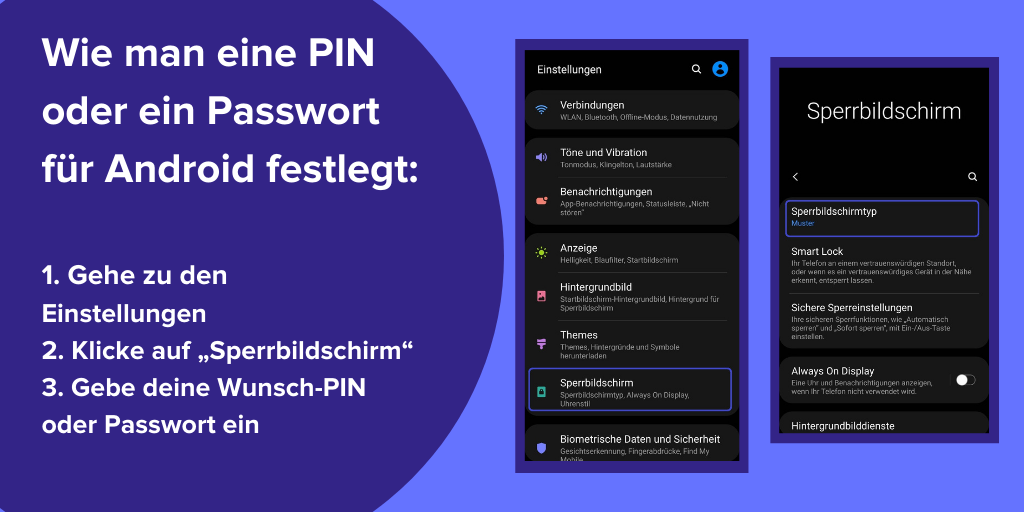 2. Lege eine PIN oder ein Passwort fest, um deinen Bildschirm zu sperren.