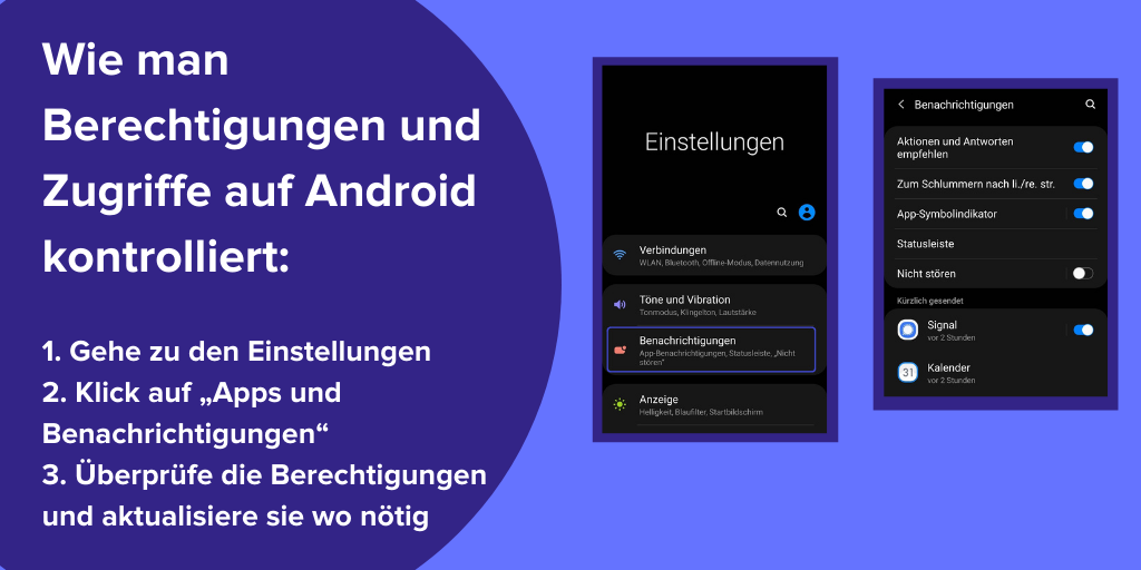Wie man Berechtigungen für Apps überprüft: Einstellungen > Benachrichtigungen > [Name der Anwendung].