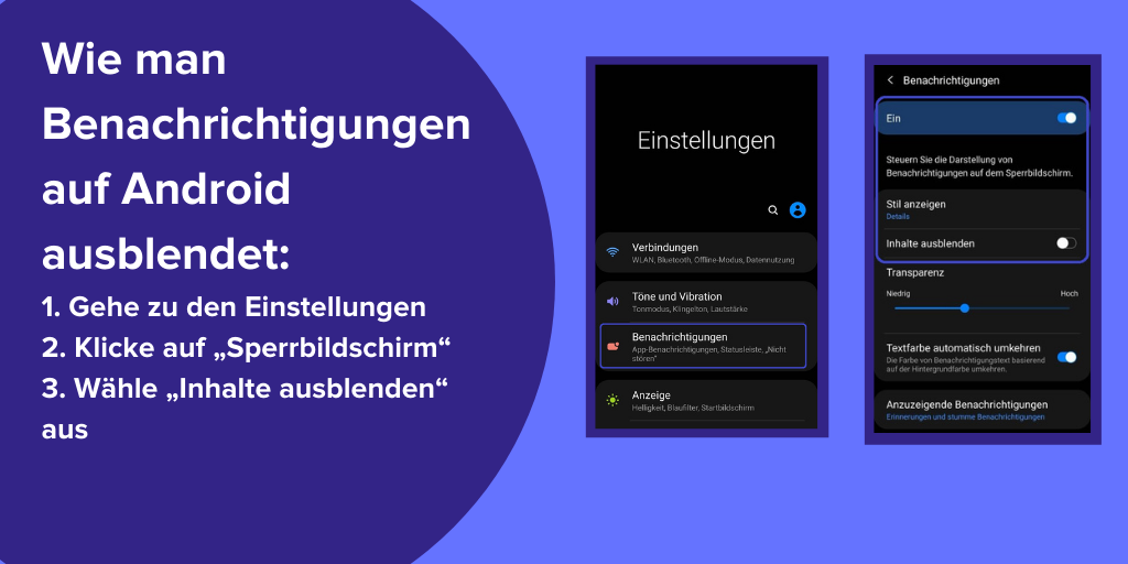 Deine privaten Nachrichten und Benachrichtigungen können von anderen auf dem Schlossbildschirm eingesehen werden. Diese Benachrichtigungen können ein- oder ausgeschaltet werden.