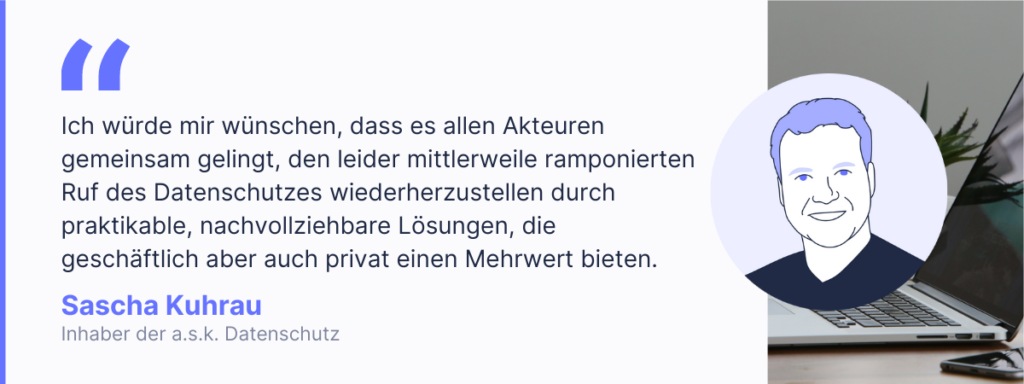 Als Datenschutzbeauftragter setzt sich Sascha Kuhrau für eine pragmatische Umsetzung von Datenschutz und Informationssicherheit in Unternehmen und Kommunen ein. Wir haben mit ihm über Entwicklungen und Zukunftsaussichten im Bereich Datenschutz gesprochen.