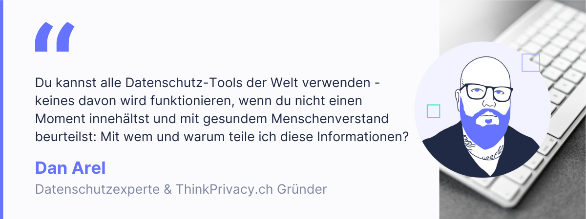 Du kannst alle Datenschutz-Tools der Welt verwenden – keines davon wird funktionieren, wenn du nicht einen Moment innehältst und mit gesundem Menschenverstand beurteilst: Mit wem und warum teile ich diese Informationen? Was kann passieren, wenn diese Informationen offengelegt werden?