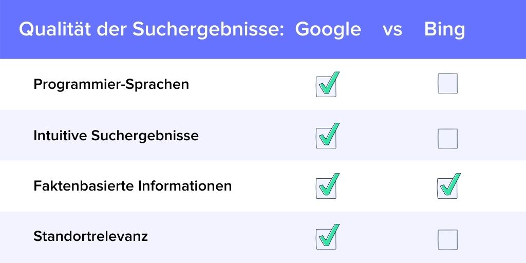 Am Ende stimmten die Ergebnisse mit der gängigen Meinung überein, dass Google den ersten Platz bei der Suche hält. Und das ist auch einer der Gründe, der die Nutzer zu Startpage zieht. Google-Ergebnisse bekommen, aber ohne jegliches Tracking und in voller Anonymität – damit hebt sich Startpage eindeutig von der Konkurrenz ab. Während Bing gute Ergebnisse liefert und ihr definitiv findet, was ihr braucht, ist es einfach nicht so intuitiv. Das bedeutet, dass ihr manchmal ein bisschen länger graben müsst, um das zu finden, wonach ihr wirklich sucht.