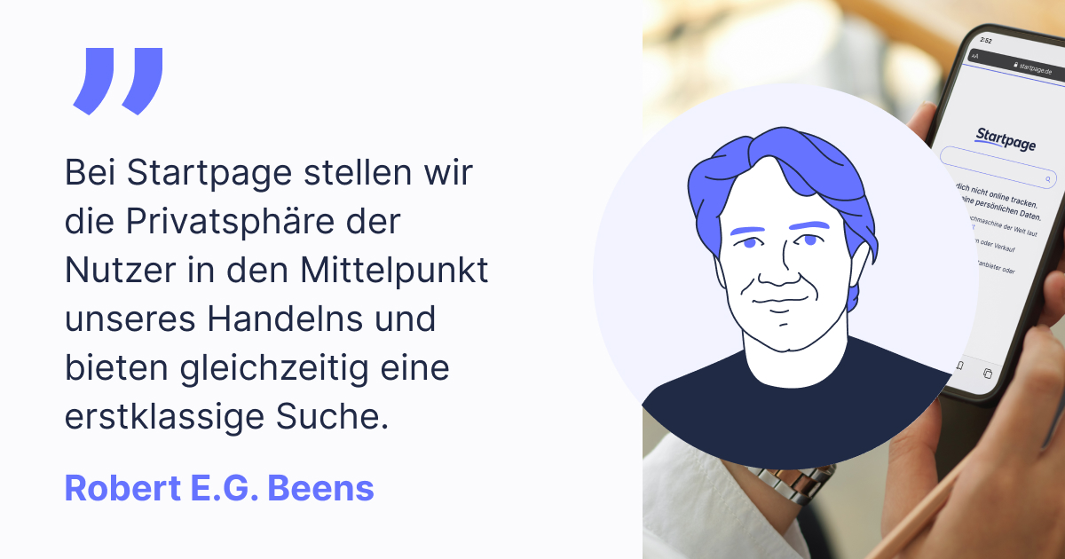 Denn wie bei allen Suchen auf Startpage werden sowohl die IP-Adresse als auch alle persönlichen Daten der suchenden Person entfernt, und damit sichergestellt, dass es keine Datenspur oder einen Aktivitätenverlauf gibt.