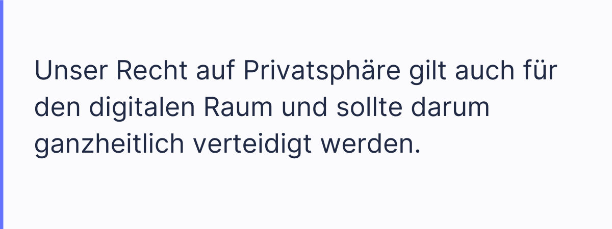 Unser Recht auf Privatsphäre gilt auch für den digitalen Raum und sollte darum ganzheitlich verteidigt werden. Einerseits braucht es Gesetze, die festlegen, in welchem Rahmen unsere persönlichen Daten verarbeitet werden dürfen. Andererseits sollten Unternehmen ihre Produkte so entwickeln, dass sie uns als Nutzer*innen schützen. Und schließlich braucht es unsere Eigeninitiative, Online-Dienste zu wählen, bei denen wir die Kontrolle über unsere Daten behalten.