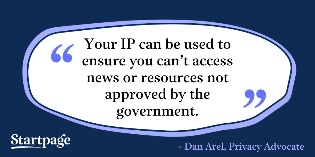 Your IP address can also help governments censor what you can see online. This can be from simple things like trying to watch a BBC News video while inside the US, to state-sponsored censorship in such areas like China or the Middle East. Your IP can be used to ensure you can’t access news or resources not approved by the government.