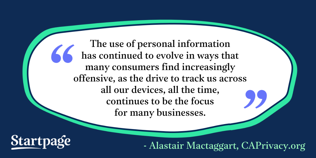 While not a panacea, in the era of mass data collection, mass surveillance, and surveillance capitalism (https://news.harvard.edu/gazette/story/2019/03/harvard-professor-says-surveillance-capitalism-is-undermining-democracy/), such protections are signs of rising awareness and much needed protective action. “The use of personal information has continued to evolve in ways that many consumers find increasingly offensive, as the drive to track us across all our devices, all the time, continues to be the focus for many businesses,” says Alastair Mactaggart, founder of Californians for Consumer Privacy (https://www.caprivacy.org/).