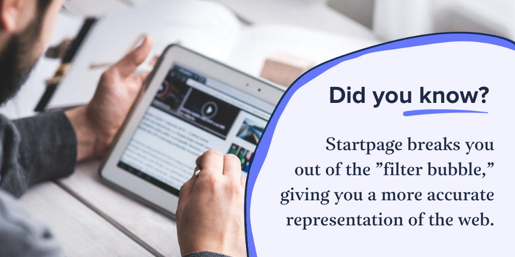 Non-private search engines give you personalized results, often leaving out other points of view. This puts you in a filter bubble. A private search engine, on the other hand, gives you a more accurate representation of the web by showing the same results to everyone around the world.