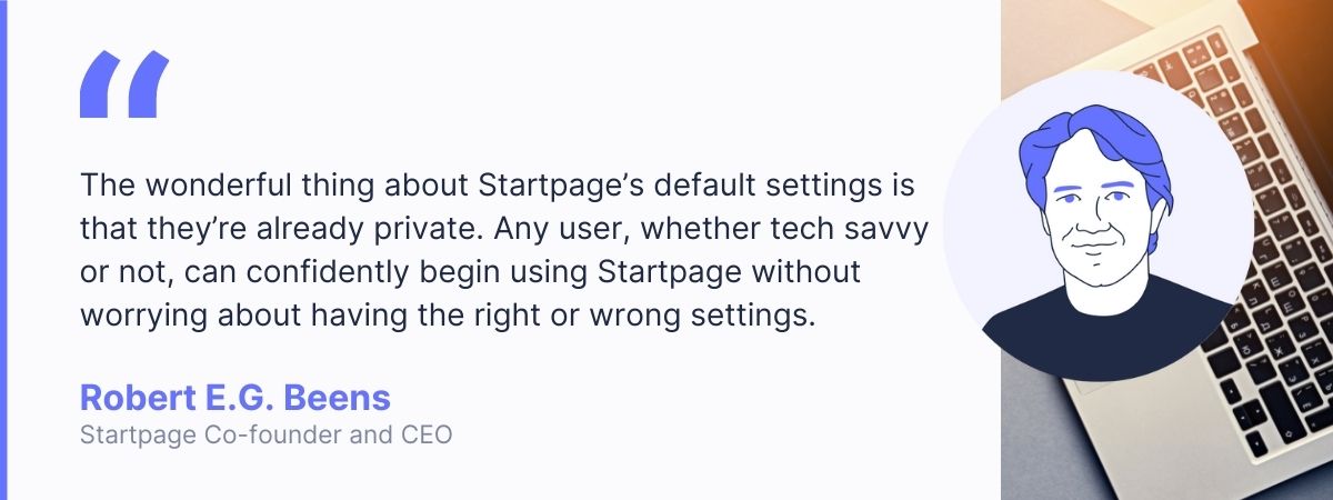 “The wonderful thing about Startpage’s default settings is that they’re already private. Any user, whether tech savvy or not, can confidently begin using Startpage without worrying about having the right or wrong settings.”