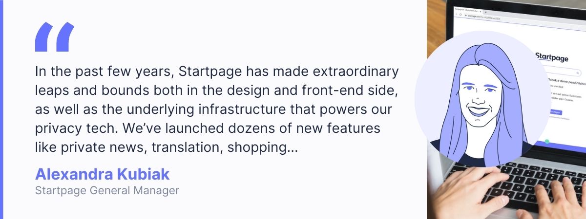 The entire Startpage team is thrilled to announce and celebrate Alexandra Kubiak as our General Manager. Not only has she helped advance our private search engine with new feature innovations and improvements as our Director of Product Management for the last three years, but she also consistently lends a listening ear and sharp sense of humor to the whole team.