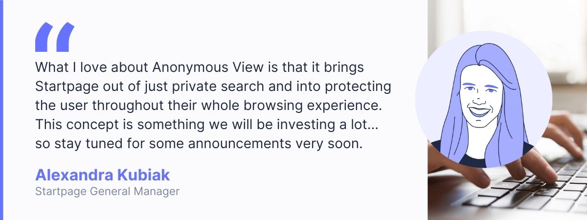 What I love about Anonymous View is that it brings Startpage out of just private search and into protecting the user throughout their whole browsing experience. This concept is something we will be investing a lot in over the next few years, so stay tuned for some announcements very soon 🙂