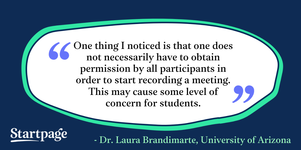 “One thing I noticed is that one does not necessarily have to obtain permission by all participants in order to start recording a meeting. This may cause some level of concern for students.”