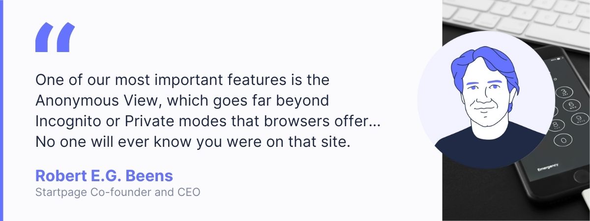 First of all, I think we are on the right path. One of our most important features is the Anonymous View, which goes far beyond Incognito or Private modes that browsers offer. Those modes only work locally on your device, search engines can still see your browsing history and any website you visit can still see your IP address and other details. With Startpage’s Anonymous View, you can click on a search result and you are viewing the website that opens completely anonymously (through Startpage). No one will ever know you were on that site.