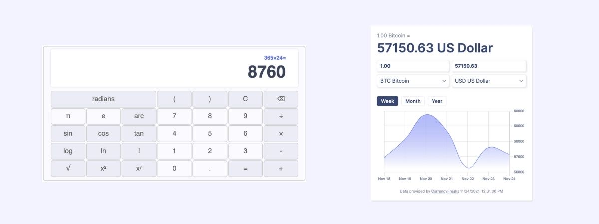 Our private search calculator lets you compute simple and complex calculations, all without being tracked or building a search history. You can trigger the private calculator by searching for “calc”, “calculator”, or a query composed entirely of supported math symbols.