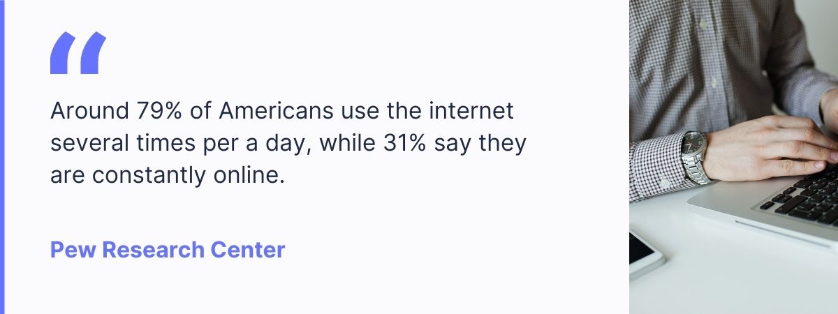 Around 79% of Americans use the internet several times per a day, while 31% say they are constantly online. During the pandemic, this trend has dramatically increased as our daily activities are shifting further into the digital space. We send private messages to our friends, shop and work online and access entertainment platforms to watch movies or listen to music.