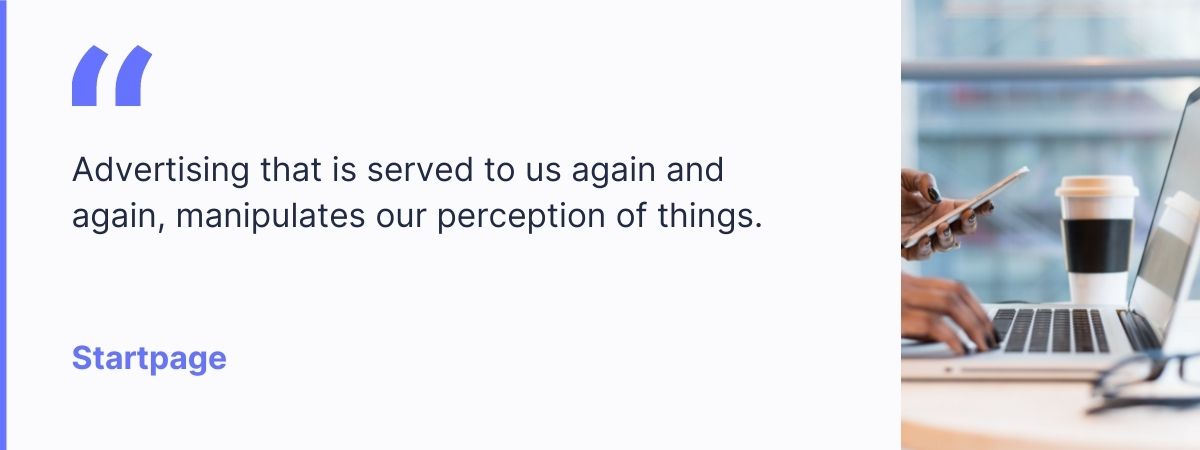For one, psychology teaches us that even when we consciously reject certain adverts, they remain stuck in our subconscious, which increases the likelihood that we will buy the product at a later date. This phenomenon is called the “mere-exposure effect”: if we are repeatedly exposed to something, we start to view it in a more positive light. Therefore, advertising that is served to us again and again, manipulates our perception of things.